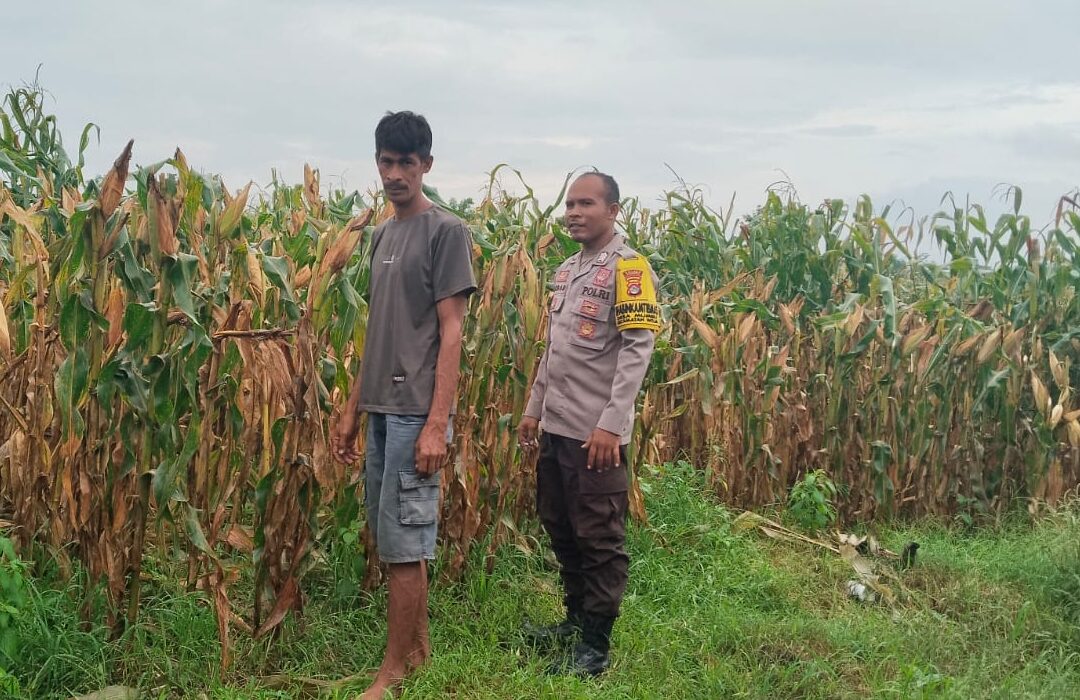 Dalam kegiatan tersebut, Bhabinkamtibmas melakukan pemantauan langsung terhadap kondisi tanaman jagung serta memberikan motivasi dan imbauan kepada pemilik lahan agar terus melakukan perawatan secara optimal guna memperoleh hasil panen yang maksimal.