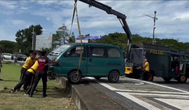 personel di lapangan langsung mendatangi lokasi kejadian, melakukan pengamanan area, serta mengatur arus lalu lintas guna mencegah kemacetan dan potensi kecelakaan, Selanjutnya, unit Pammat (pengamanan dan penyelamatan) subdit gasum dengan Randis (kendaraan dinas) Sar And Rascue yang di pimpin Ps. Panit siturjawali Aiptu yudi asmara membantu mengevakuasi kendaraan tersebut agar dapat dikeluarkan dari area taman Bundaran Gerung, pengemudi dan penumpang selamat tidak ada korban yang luka ataupun korban jiwa