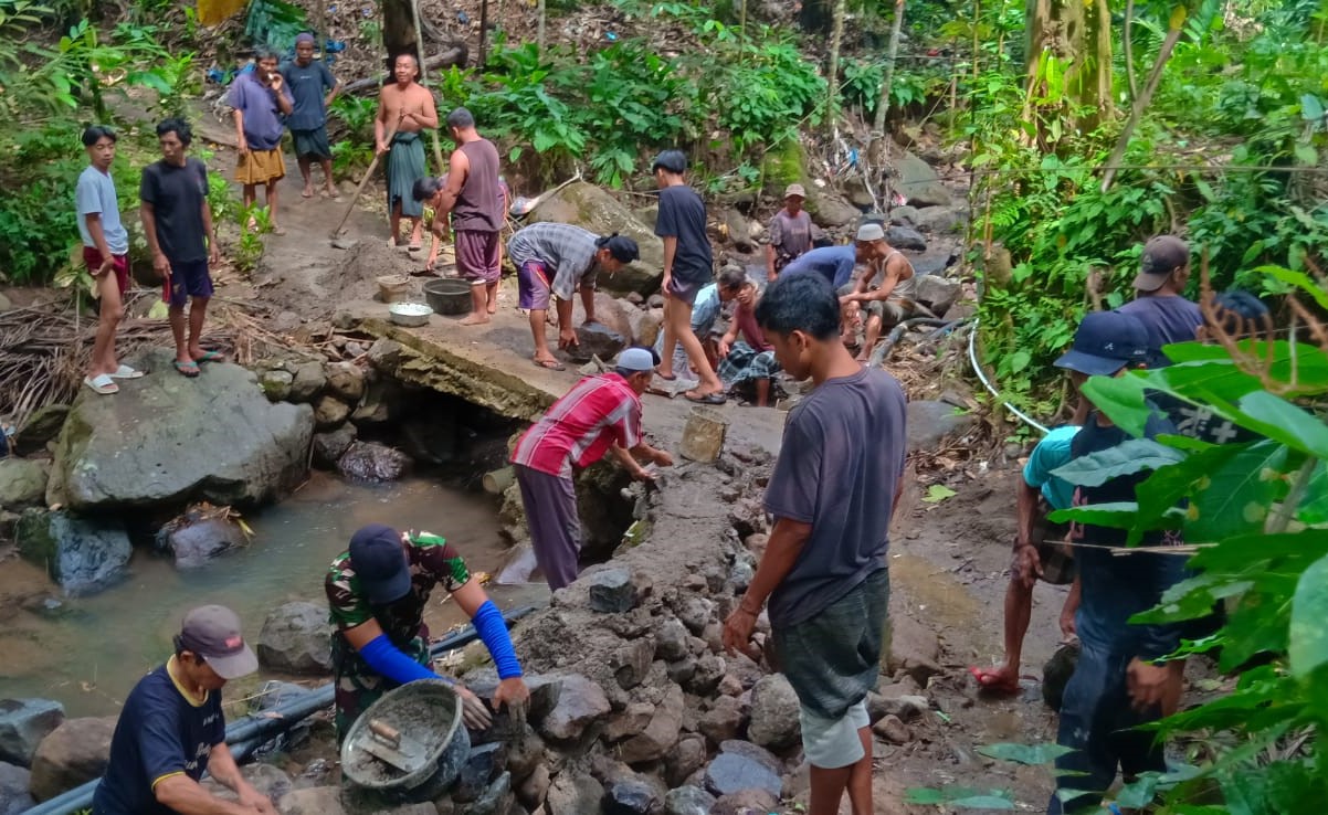 Dengan kebersamaan, Babinsa bersama perangkat desa dan warga mengangkat batu, menyusun talud, serta memperkuat struktur jembatan secara manual. Meski dikerjakan secara sederhana, semangat kebersamaan dan kekompakan menjadi kunci utama suksesnya kegiatan tersebut.