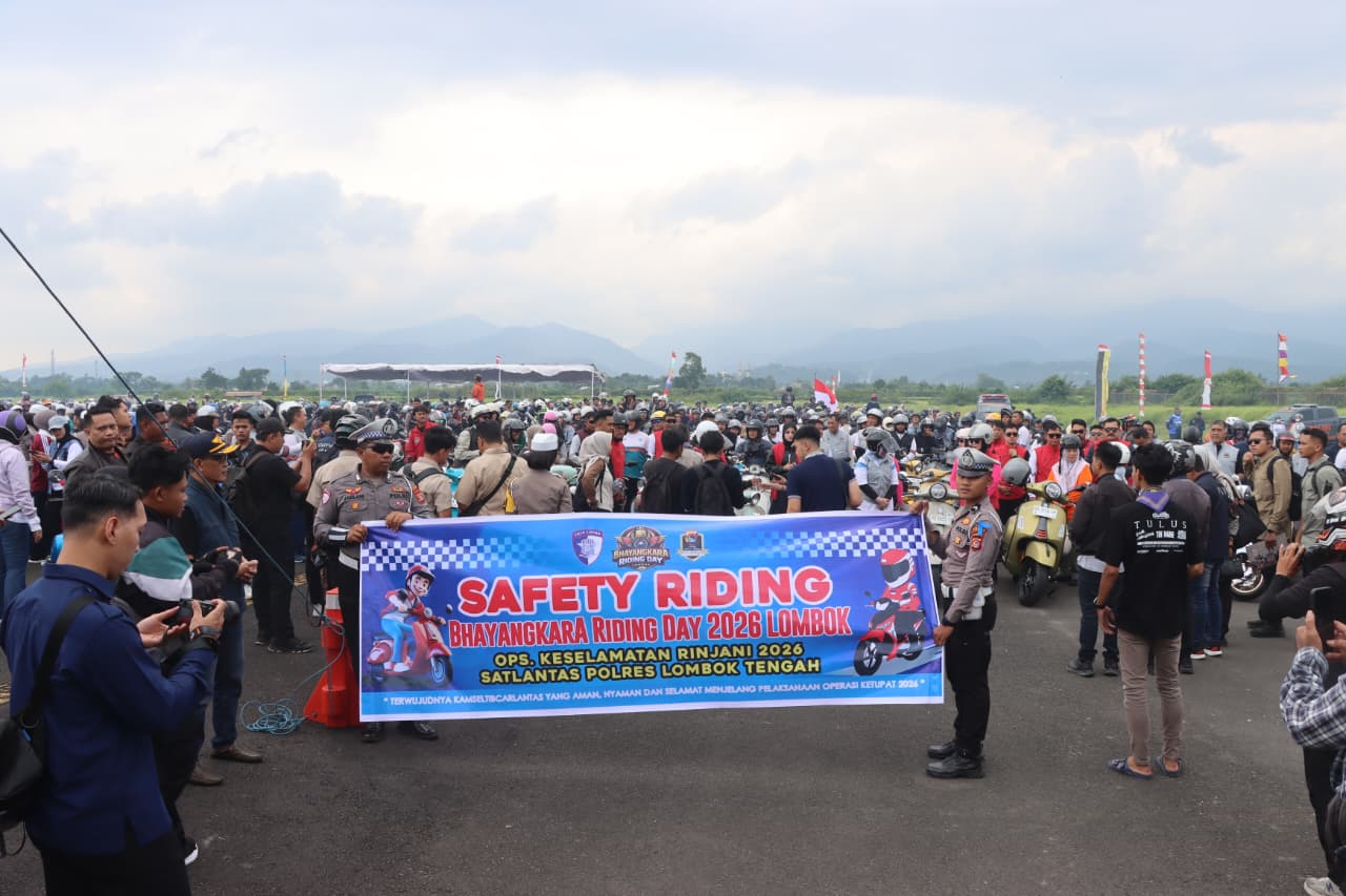 Lombok Tengah, (NTB) – Sekitar 3.500 peserta bikers dari berbagai komunitas motor memadati ajang Bhayangkara Riding Day 2026 yang digelar di eks Bandara Selaparang menuju Pantai Kuta Mandalika.