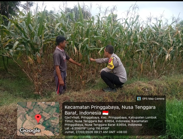 Lombok Timur – Bhabinkamtibmas Desa Pringgabaya, Polsek Pringgabaya, Polres Lombok Timur, Polda NTB, Aipda Marten , melaksanakan kegiatan pengecekan lahan jagung milik warga pada Jumat, 27 Februari 2026, mulai pukul 09.00 Wita hingga selesai.