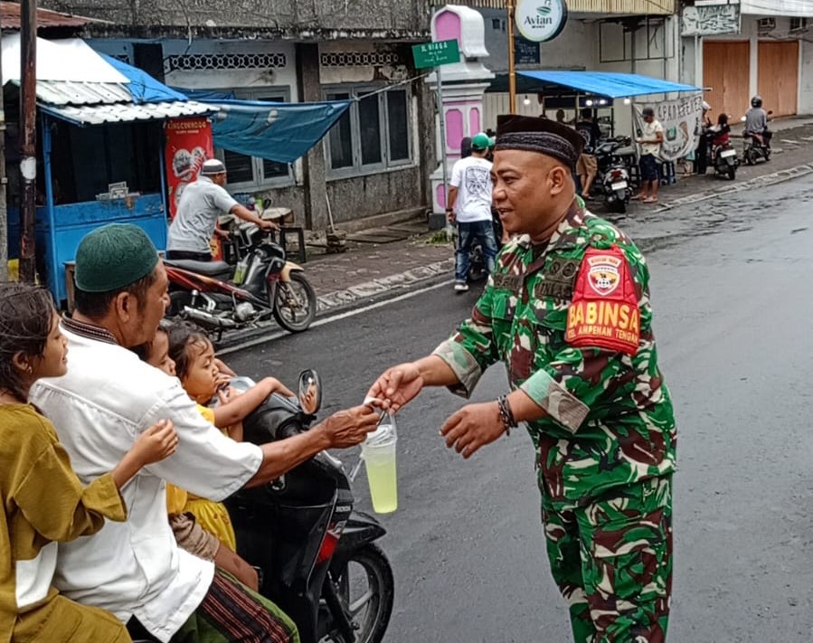 Babinsa Kelurahan Ampenan Tengah, Serka Agus Subiantoro, turut mendampingi kegiatan sosial yang digagas Karang Taruna Satu Sampan bersama PKK Kelurahan Ampenan Tengah. Ratusan paket takjil dibagikan kepada masyarakat pengguna jalan serta para pedagang durian yang masih beraktivitas hingga sore hari di sekitar lokasi.