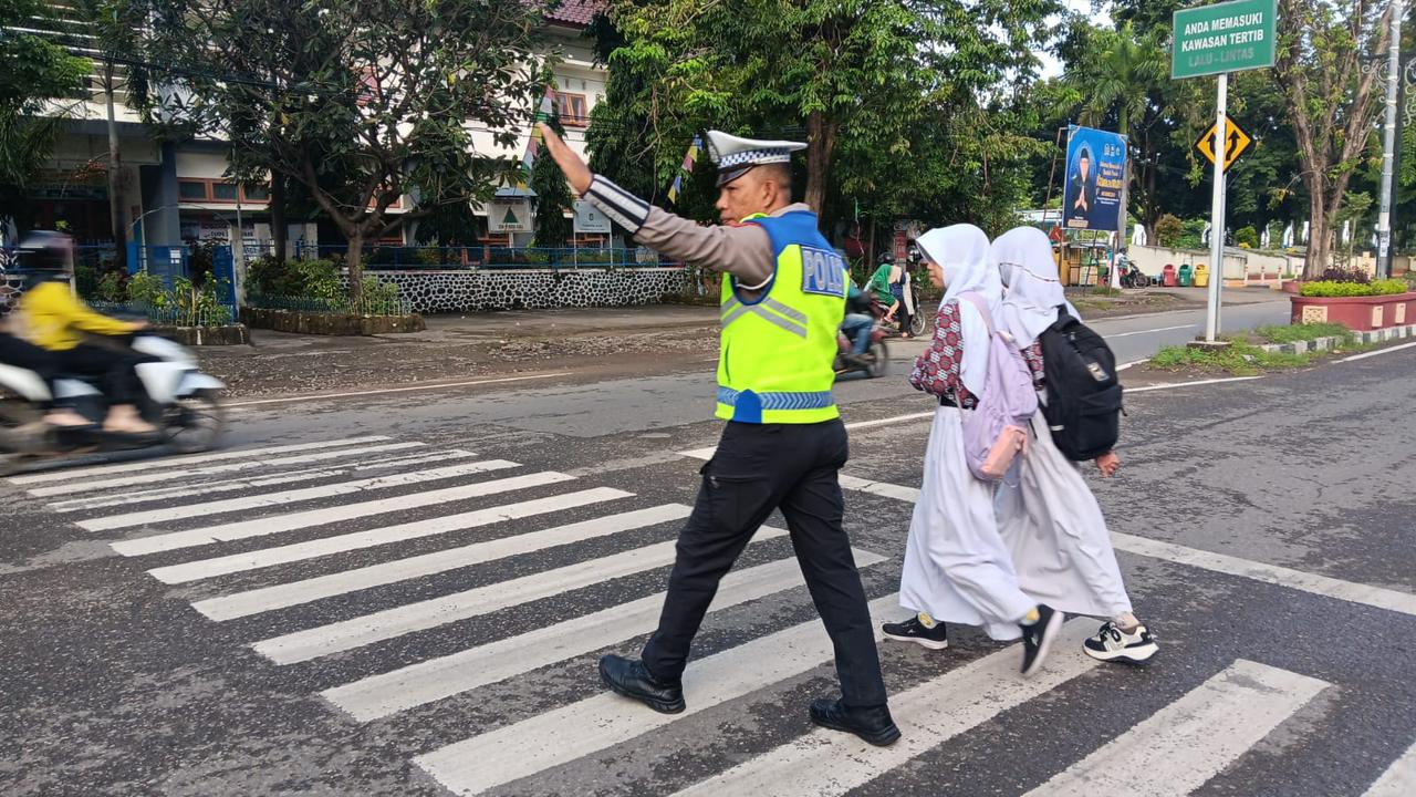 “Personel kami membantu menyeberangkan pejalan kaki dan anak-anak sekolah, serta memberikan rasa aman kepada para pengguna jalan sehingga arus lalu lintas tetap lancar dan tertib,” jelasnya.