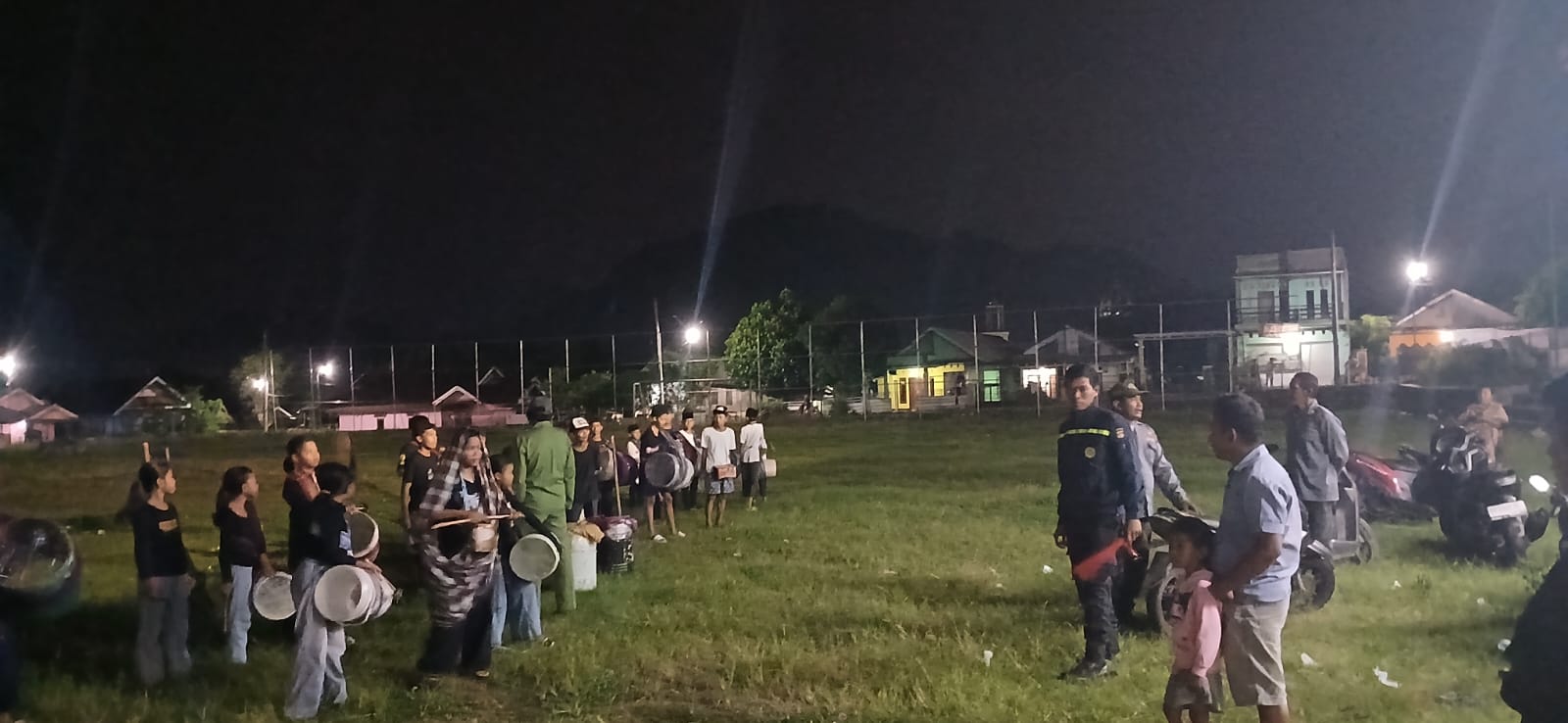 Puluhan peserta yang tergabung dalam beberapa kelompok tampak berkeliling desa sambil menabuh gendang dan berbagai alat musik sederhana untuk membangunkan masyarakat agar bersiap menyantap sahur. Suara tabuhan gendang yang menggema di sepanjang jalan desa menambah semarak suasana Ramadan serta menjadi hiburan tersendiri bagi masyarakat.