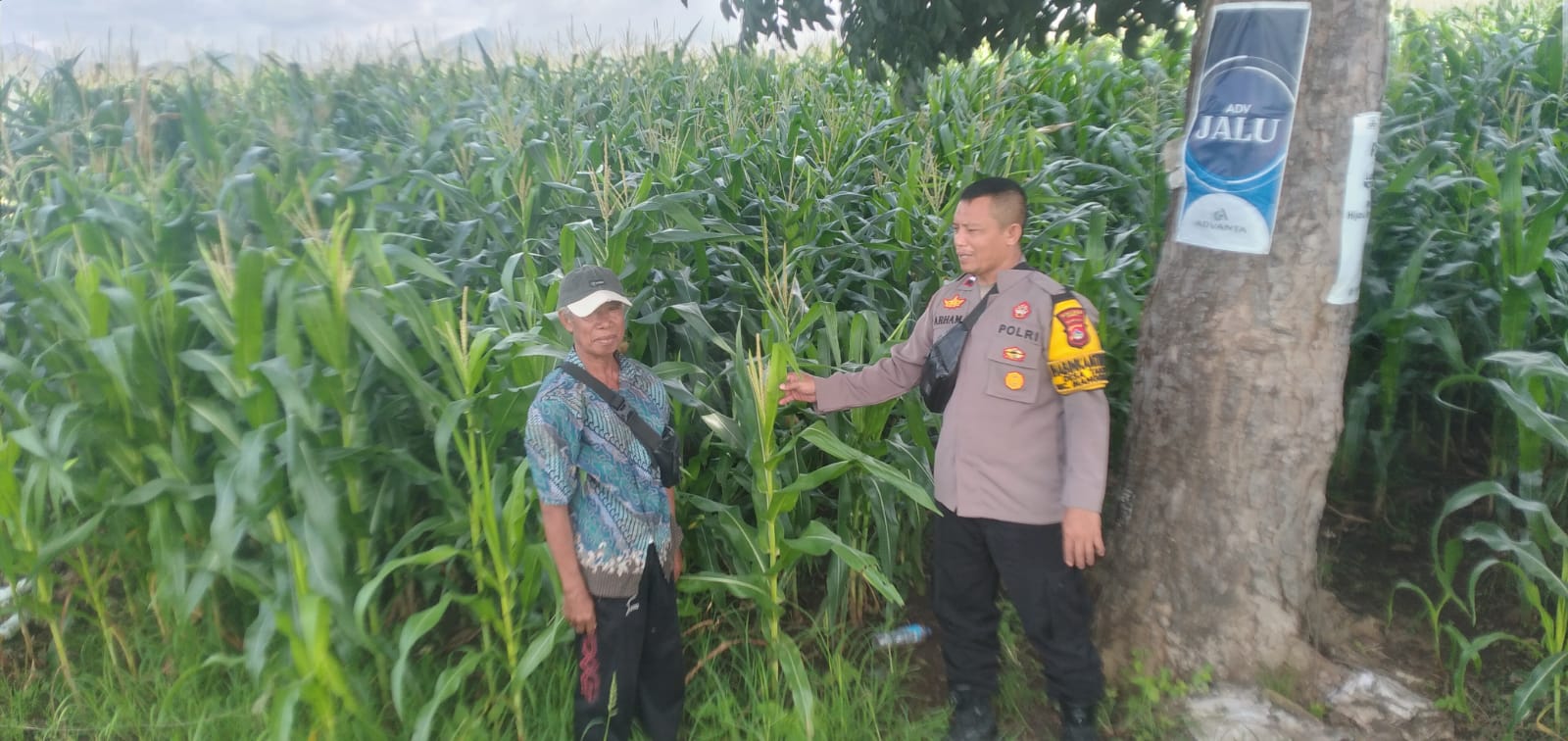 Pemantauan dilakukan oleh Bhabinkamtibmas Desa Tanju Polsek Manggelewa, AIPDA Arham, terhadap lahan jagung milik Bapak Samsun (50) dengan luas keseluruhan 2 hektar. Jagung yang ditanam merupakan varietas hibrida ADV JALU, saat ini memasuki usia tanaman sekitar 45 hari, dengan estimasi masa panen pada bulan Mei 2026 dan perkiraan hasil panen mencapai ±16 ton.