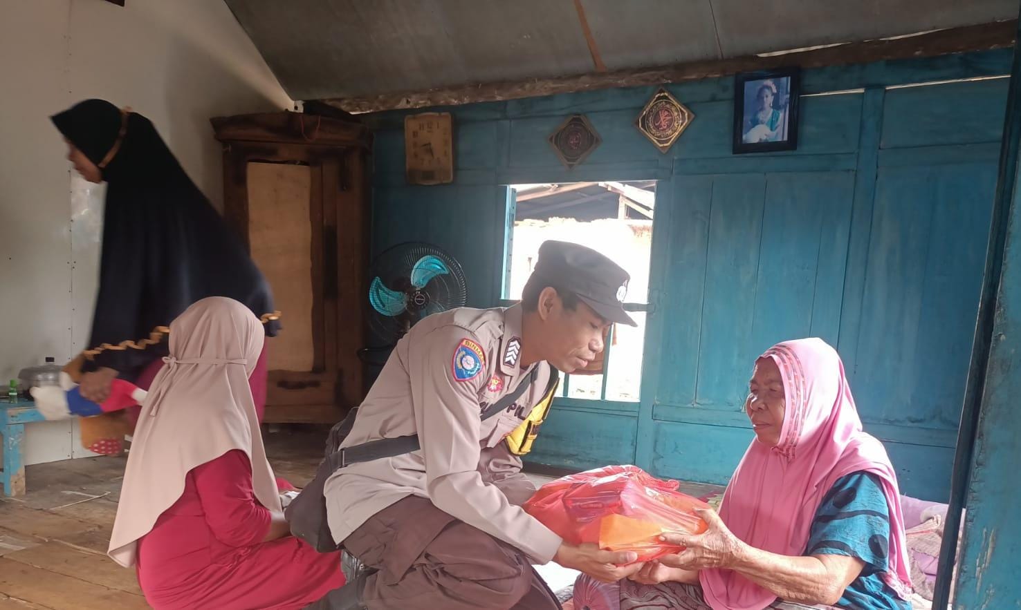 Kedatangan Bhabinkamtibmas ini guna menyerahkan bantuan berupa paket sembako untuk membantu Nenek yang sudah berusia senja tersebut.