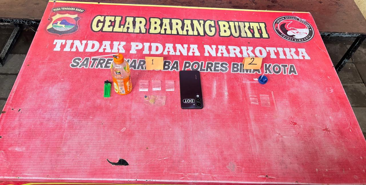 Pelaksana Harian (Plh) Kapolres Bima Kota AKBP Hariyanto, S.I.K., S.H., melalui Kasat Resnarkoba AKP Jahyadi Sibawaih menjelaskan, terduga pelaku berinisial MU (22) diamankan di sebuah kios pinggir jalan di Kelurahan Rabadompu, Kecamatan Raba, Kota Bima.