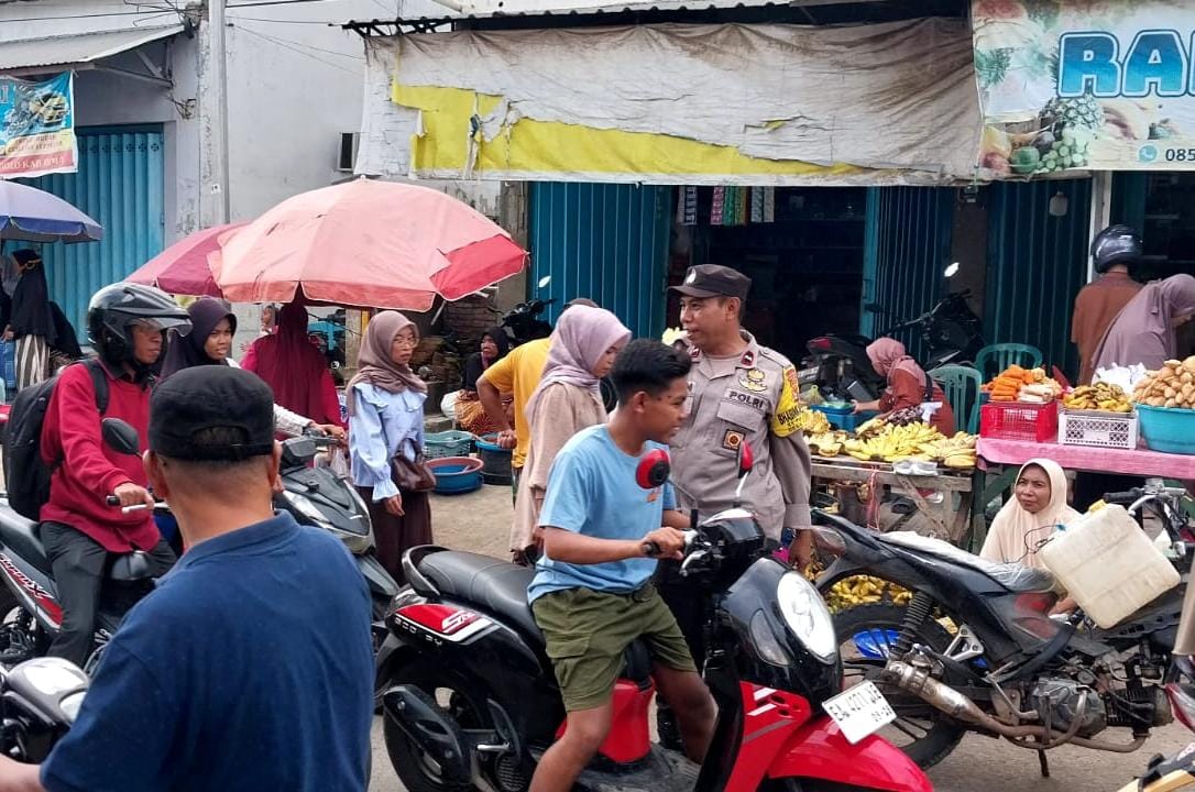 Dalam pelaksanaannya terlihat sejumlah personil melakukan pengaturan arus lalulintas di area pasar tersebut Minggu 8 Maret 2026 Sore.