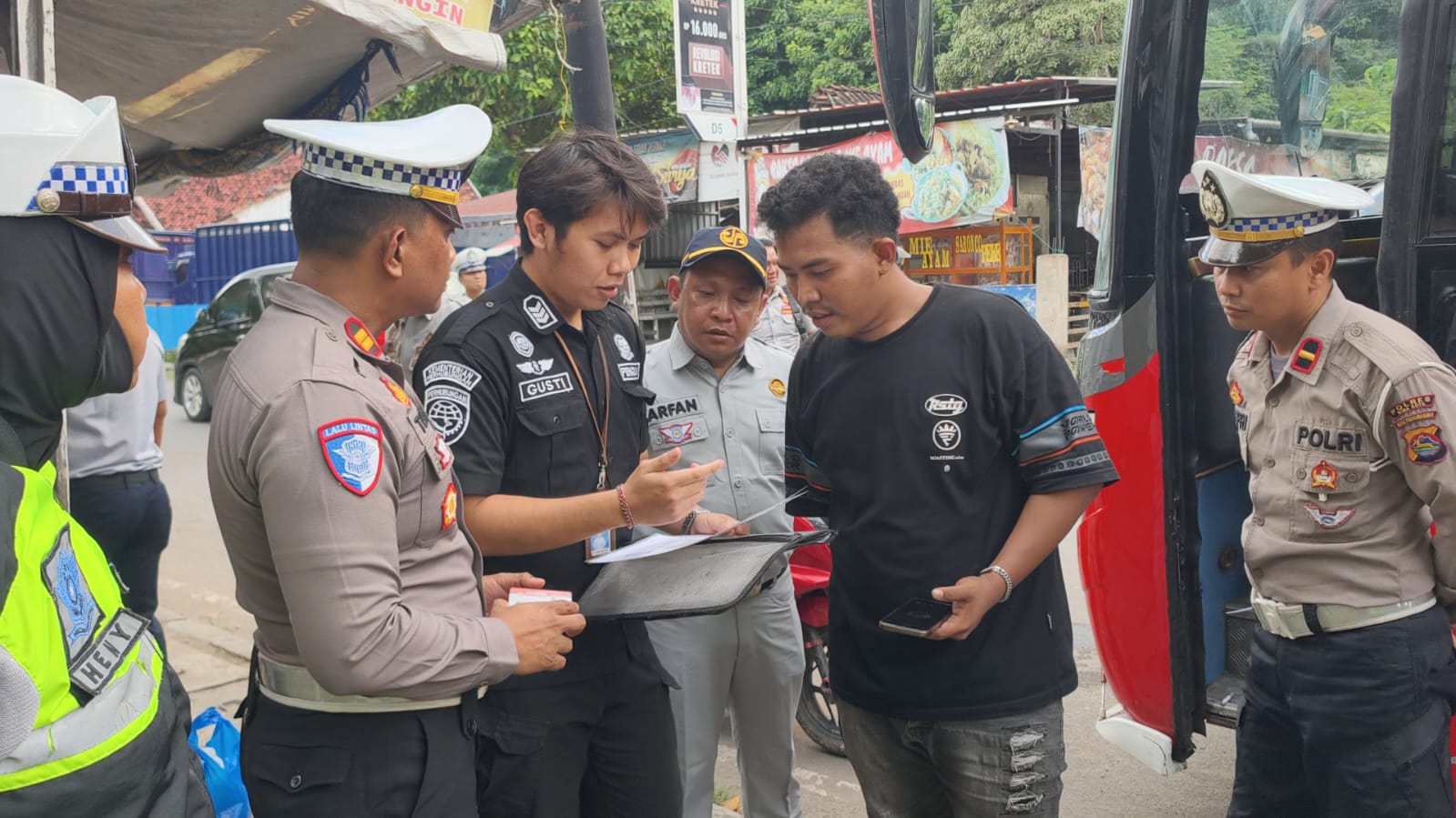 Dalam kegiatan tersebut, petugas melakukan pemeriksaan kelengkapan administrasi kendaraan, kondisi teknis kendaraan, serta kelayakan operasional bus guna memastikan kendaraan yang beroperasi memenuhi standar keselamatan.