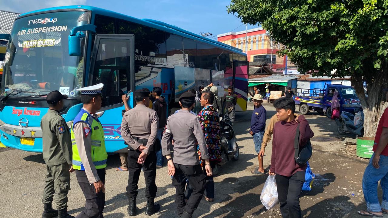 Kegiatan tersebut dilakukan sebagai bentuk pelayanan dan pengamanan kepada masyarakat yang melakukan perjalanan mudik, guna memastikan situasi tetap aman, tertib, dan kondusif di kawasan terminal.