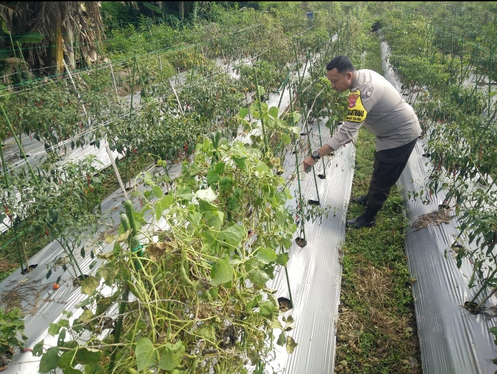 Dalam pelaksanaan tugasnya, AIPTU Iwan Wahyudin melakukan pengecekan terhadap lahan yang ditanami berbagai jenis tanaman hortikultura, seperti tomat, terong, cabai, serta jagung. Program Ketahanan Pangan Bergizi (P2B) ini bertujuan untuk meningkatkan kesejahteraan dan asupan gizi masyarakat, sekaligus mendukung program swasembada pangan pemerintah.