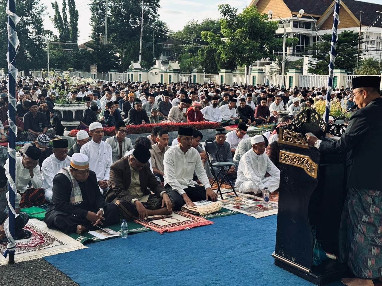 Pelaksanaan Sholat Idul Fitri 1447 Hijriah di Halaman Kantor Wali Kota Bima tersebut berlangsung dengan lancar, aman, dan tertib hingga selesai.