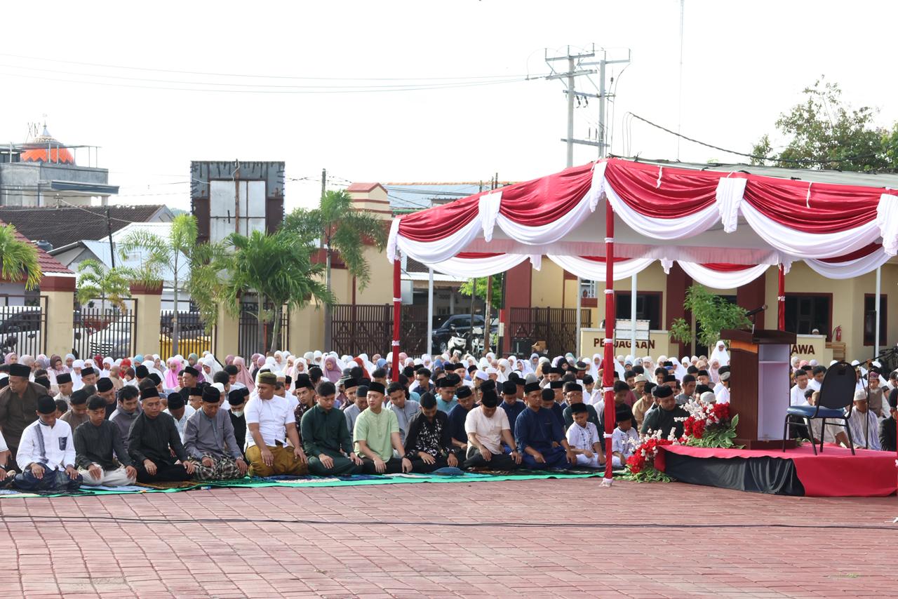 Hadir langsung dalam barisan jemaah, Kapolres Sumbawa AKBP Marieta Dwi Ardhini, S.H., S.I.K., didampingi jajaran Pejabat Utama (PJU) Polres Sumbawa, serta sekitar 150 jemaah yang terdiri dari personel Polri dan warga setempat.