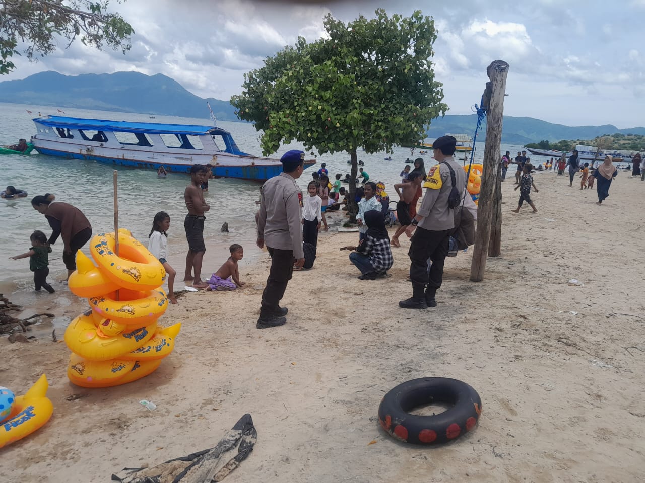 Kegiatan pengamanan ini difokuskan pada aktivitas masyarakat yang tengah berlibur dan mandi di kawasan pantai, guna memastikan situasi tetap aman, tertib, dan kondusif.