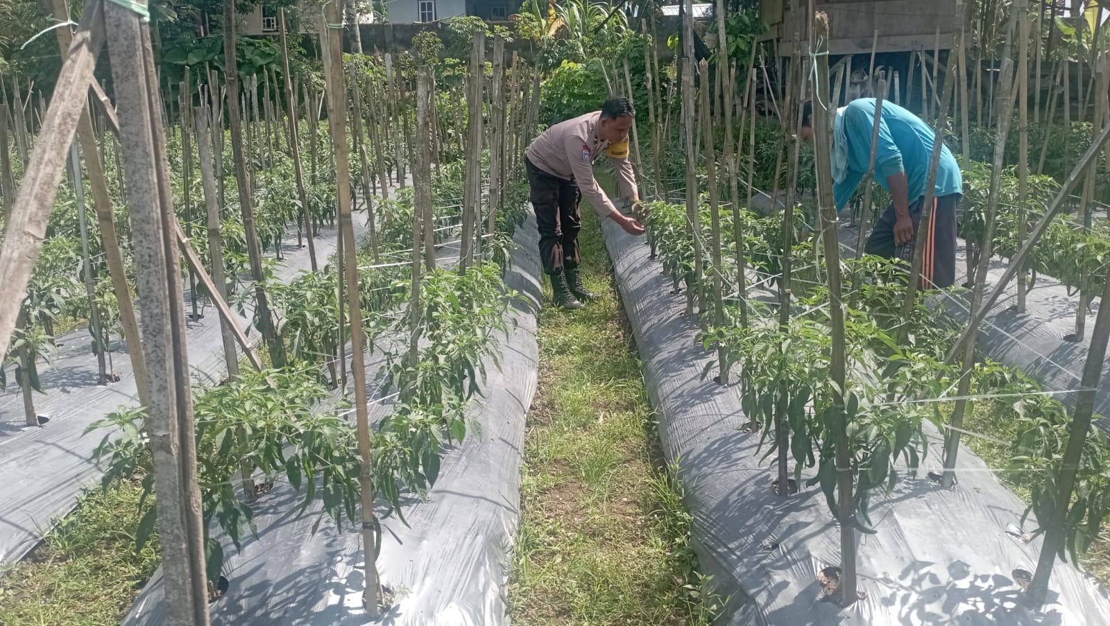 Di lokasi, Aipda Rodi H. bersama warga melakukan pengecekan terhadap tanaman cabe yang menjadi salah satu komoditas unggulan dalam program ketahanan pangan bergizi. Tanaman tersebut dinilai cukup potensial dalam menunjang kebutuhan pangan sekaligus meningkatkan ekonomi masyarakat.