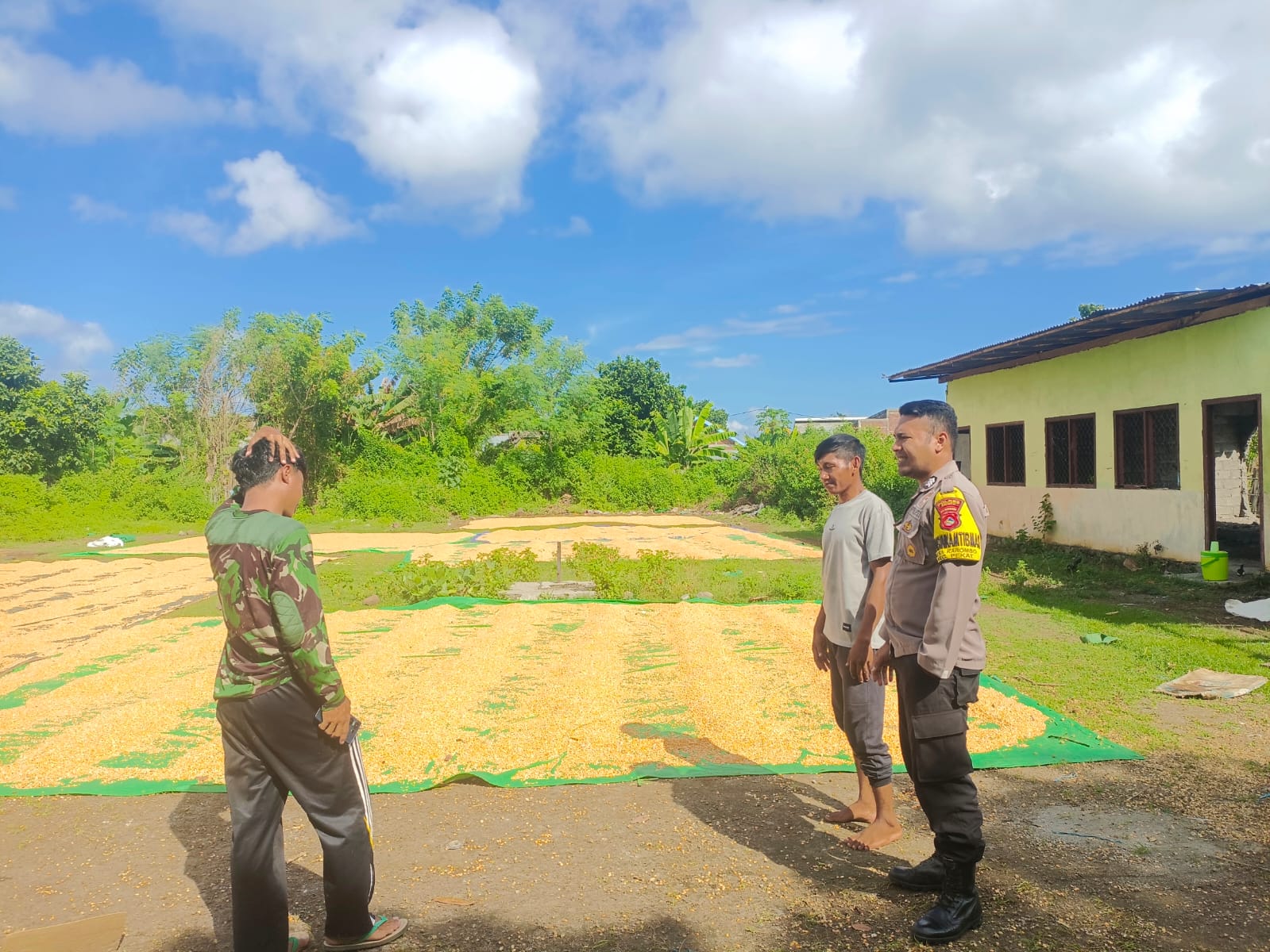Dalam rangka mendukung Program Ketahanan Pangan Nasional menuju Indonesia Emas 2045, Bhabinkamtibmas Desa Karombo Polsek Pekat, BRIGADIR Muh. Ali Fikri, melaksanakan pemantauan kegiatan masyarakat yang tengah melaksanakan panen raya dan penjemuran jagung di Dusun Ladore, Desa Karombo, Kecamatan Pekat, Kabupaten Dompu, Selasa (31/3/2026) pukul 12.30 WITA hingga selesai.