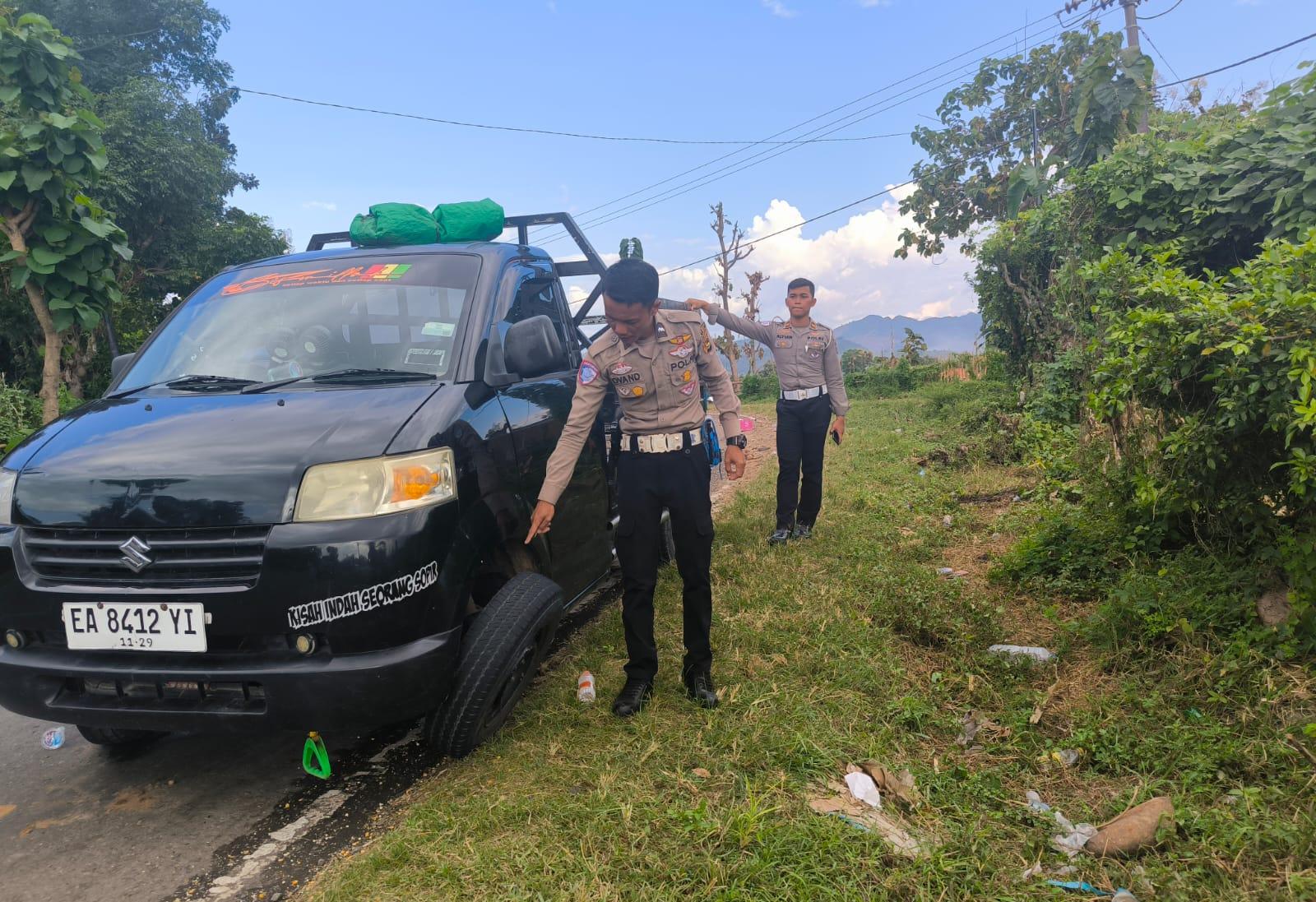 Unit gakum Satlantas Polres Bima Kabupaten Polda NTB melaksanakan olah TKP kasus kecelakaan lalulintas tunggal di jalan lintas Bima- Dompu.