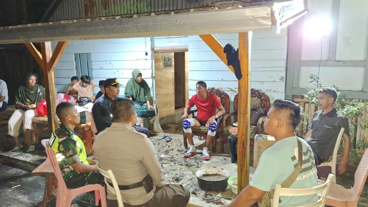 Personel Polsek Tambora Polres Bima Kabupaten Polda NTB bersama warga bantu padamkan kebakaran di Desa Kawinda To, i Kecamatan Tambora Kabupaten Bima.