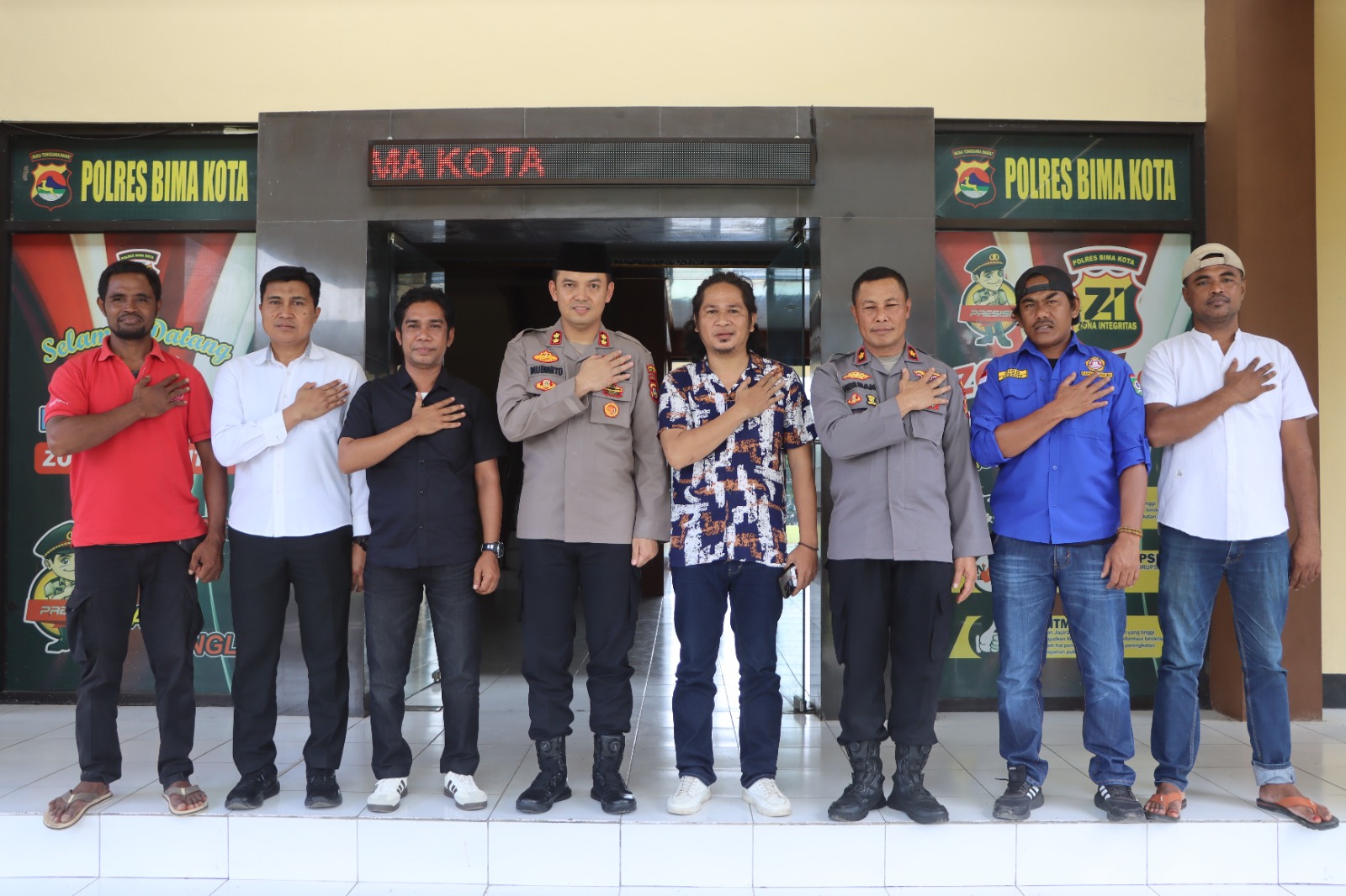 Rombongan PKT Kota Bima diterima langsung oleh Kapolres Bima Kota, AKBP Mubiarto, S.I.K., M.M., yang didampingi Wakapolres Herman serta Kepala Satuan Intelkam Polres Bima Kota. Pertemuan berlangsung hangat dan penuh keakraban di lingkungan Mako Polres Bima Kota.