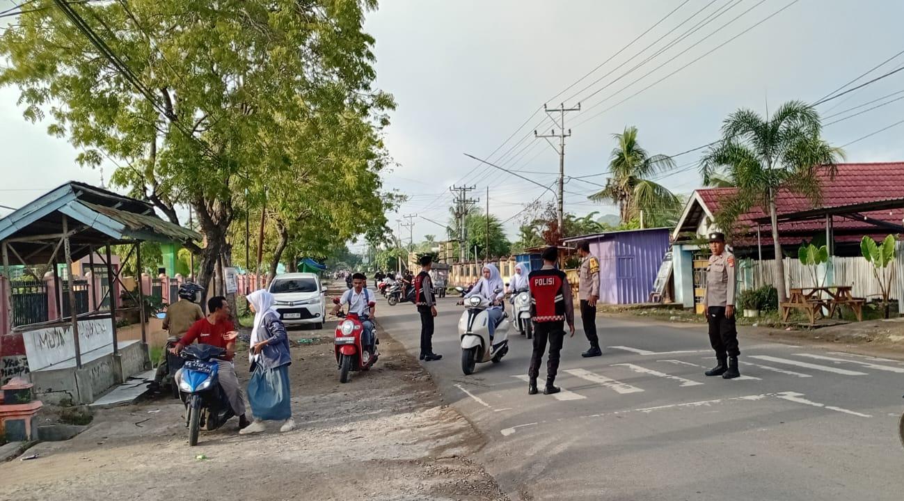 Polsek Woha Polres Bima Kabupaten Polda NTB melaksanakan kegiatan pengamanan (PAM) rawan pagi di depan SMA Negeri 1 Woha Kecamatan Woha Kabupaten Bima pada Senin 6 April 2026.