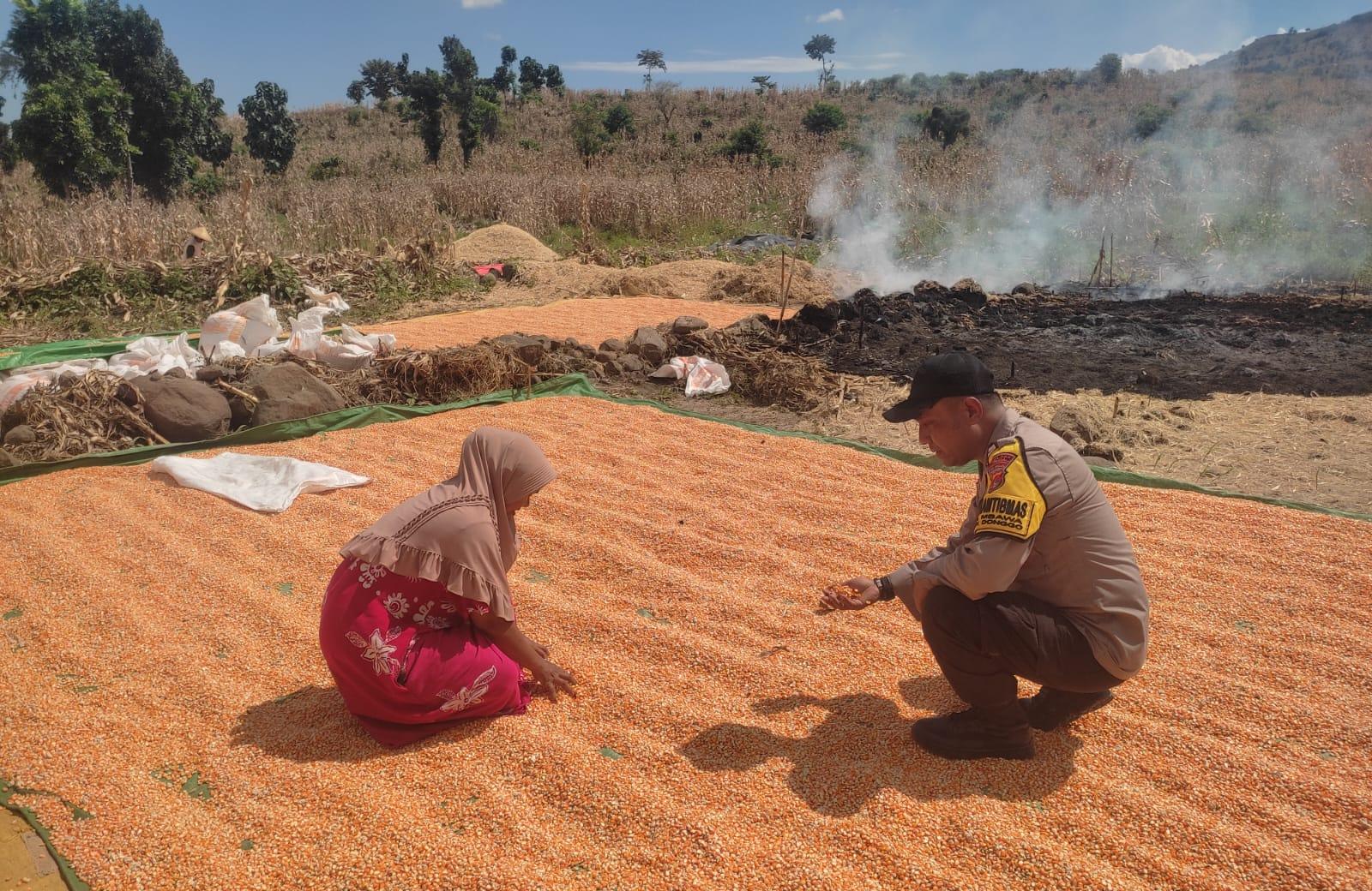 Pada Kamis 9 April 2026 siang Bripka Abdul Karim menyambangi dan membantu para petani yang sedang menjemur jagung.