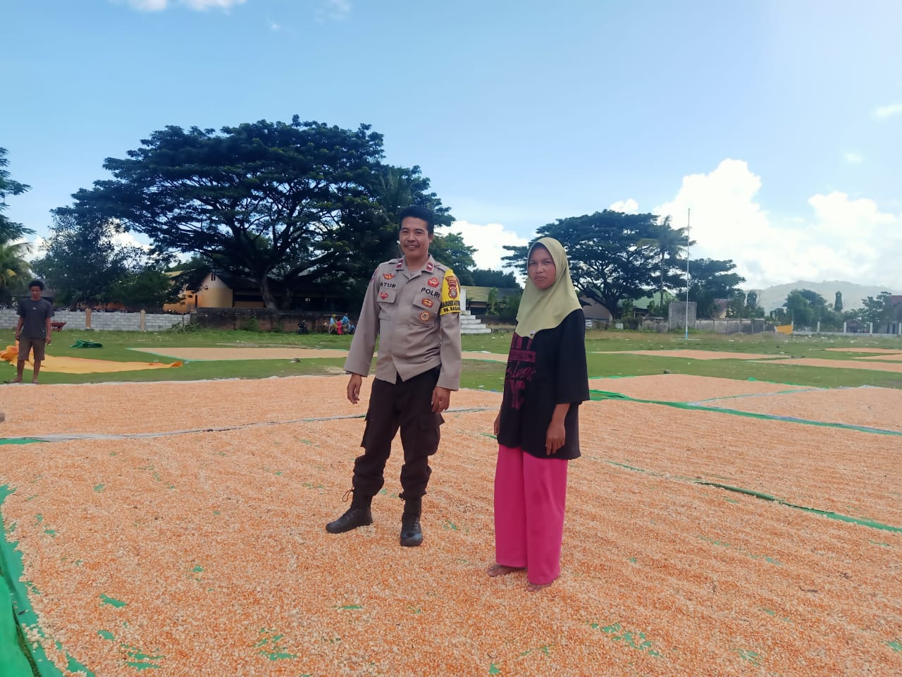 Dalam kegiatan tersebut, Bhabinkamtibmas tidak hanya melakukan pemantauan terhadap proses penjemuran jagung, namun juga memberikan motivasi serta dorongan semangat kepada petani guna meningkatkan produktivitas pertanian.