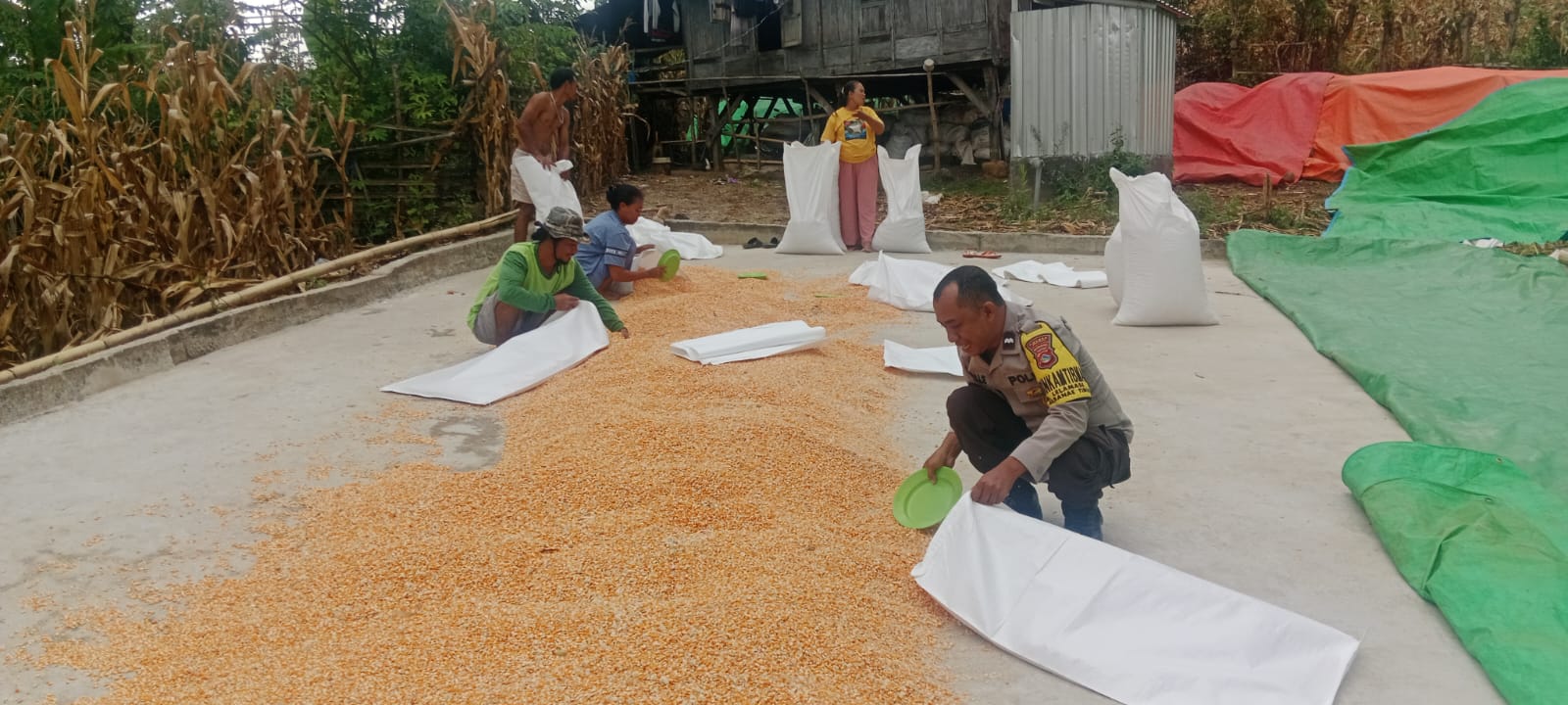 Melalui Bhabinkamtibmas Kelurahan Lelamase, Polsek Rasanae Timur Polres Bima Kota, Aipda Arif Rahman, dilakukan pemantauan proses penjemuran jagung milik warga hasil panen di wilayah So Rida Rombo, Kelurahan Lelamase, pada Senin, 20 April 2026, sekitar pukul 14.00 WITA.