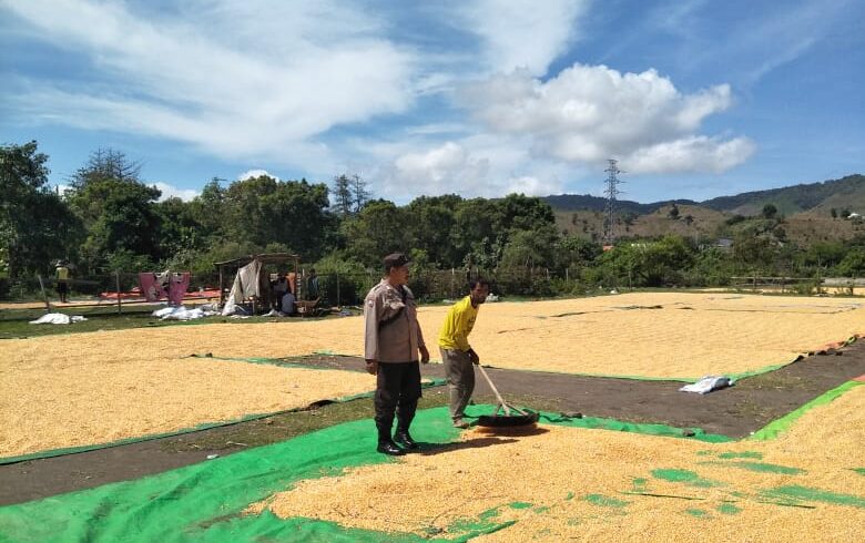 Bhabinkamtibmas Polsek Manggelewa Pantau Penjemuran Jagung Warga